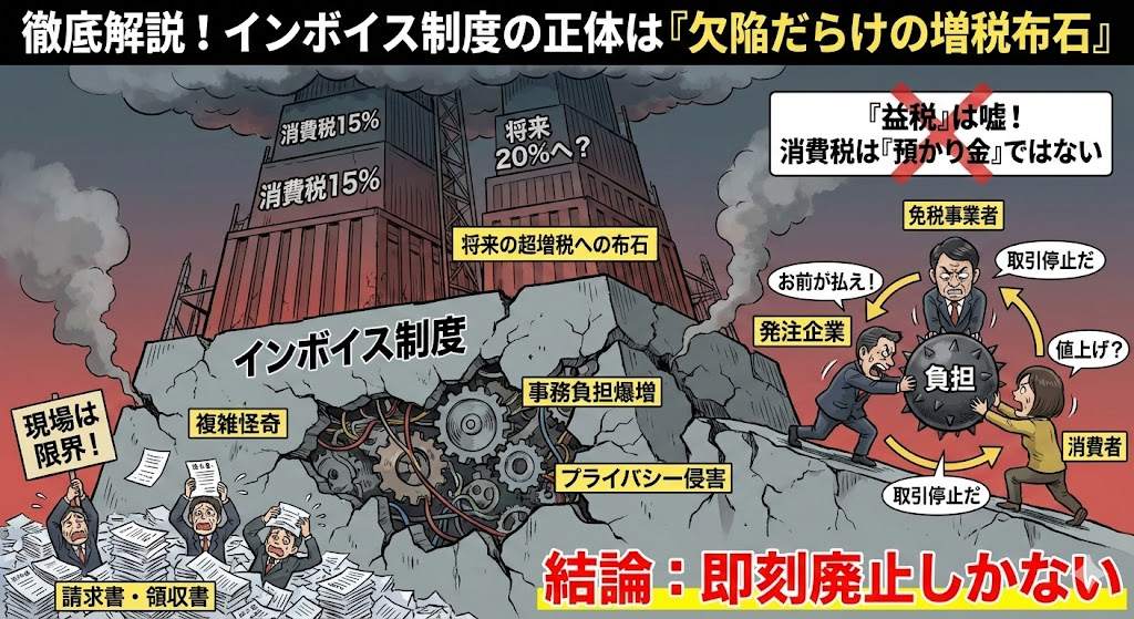 複雑な事務作業にリソースを奪われ、生産性を落とし、小規模事業者を廃業に追い込むこの悪法に対し、私たちは声を上げ続ける必要があります。