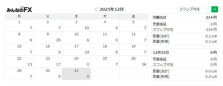 2025年の締めくくりとなる12月、スワップ収益が大きくジャンプアップしました!