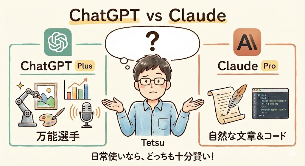 - 文章力を極めたいならClaude、万能感を求めるならChatGPT、という選び方もありです。